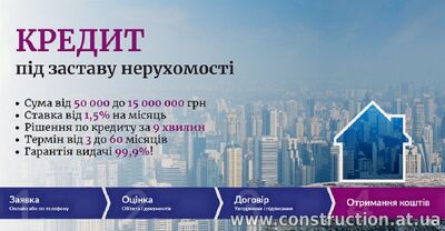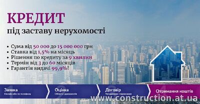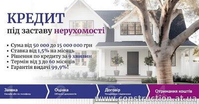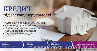 Оформити кредит під заставу швидко. Кредит за 1 годину без довідки про доходи. Кредит під заставу земельної ділянки. Кредит під 18% річних під заставу будинку. Кредит без довідки про доходи до 15 млн грн під за