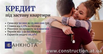 Фінансова компанія "Banknota" пропонує кредитування від 50 000 до 15 000 000 гривень всього під 1,5% на місяць під заставу будь-якої нерухомості!